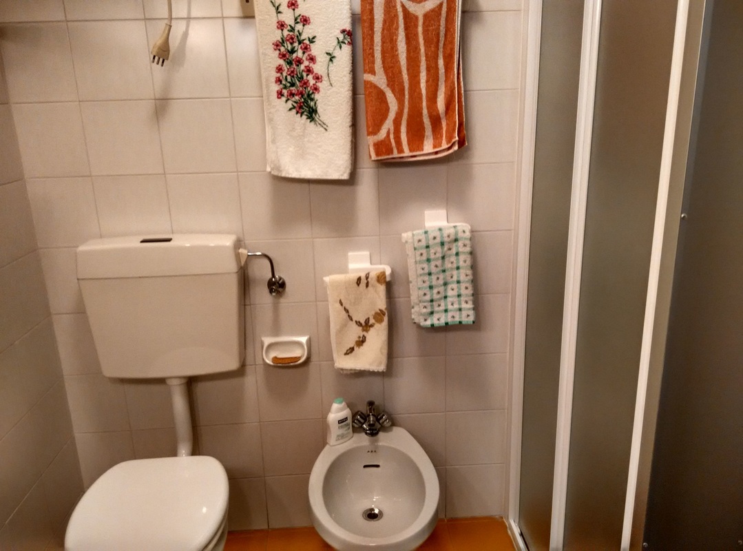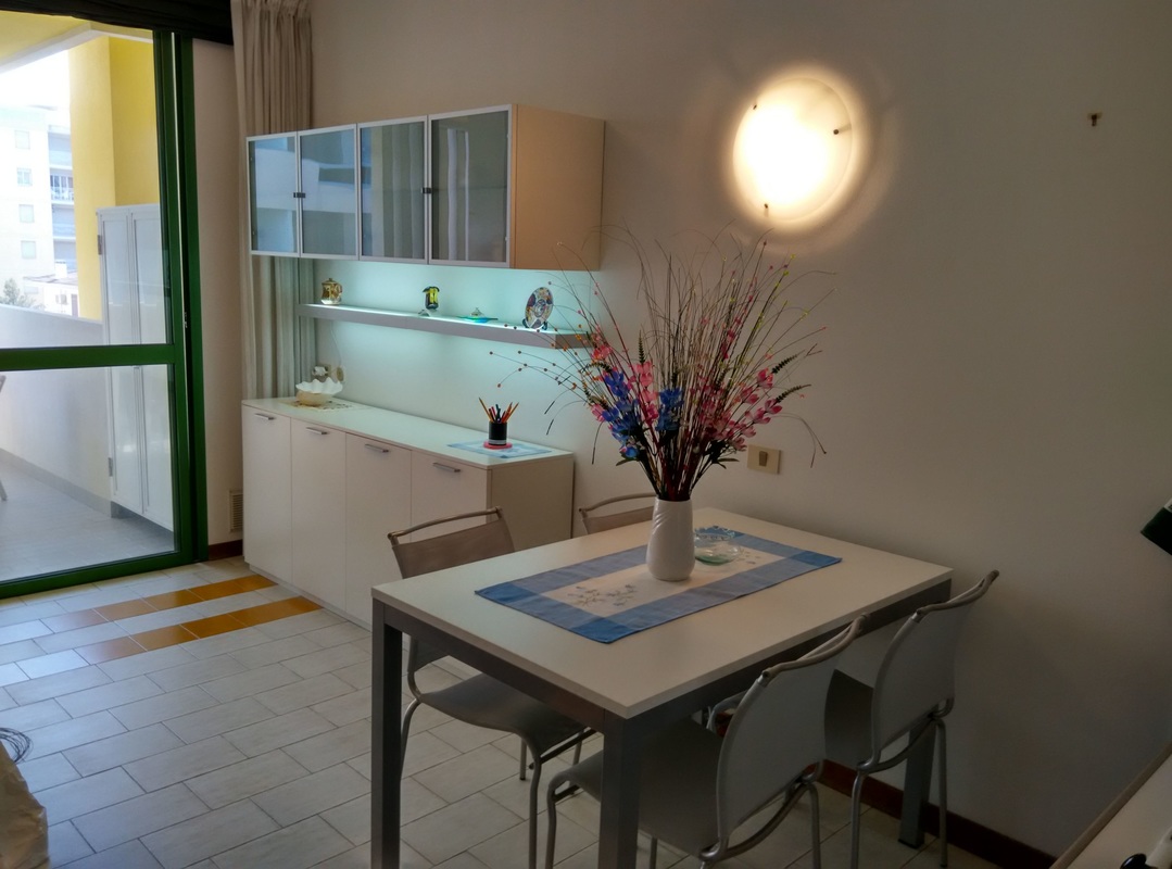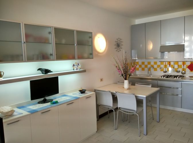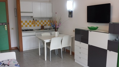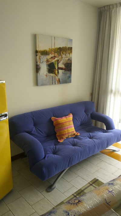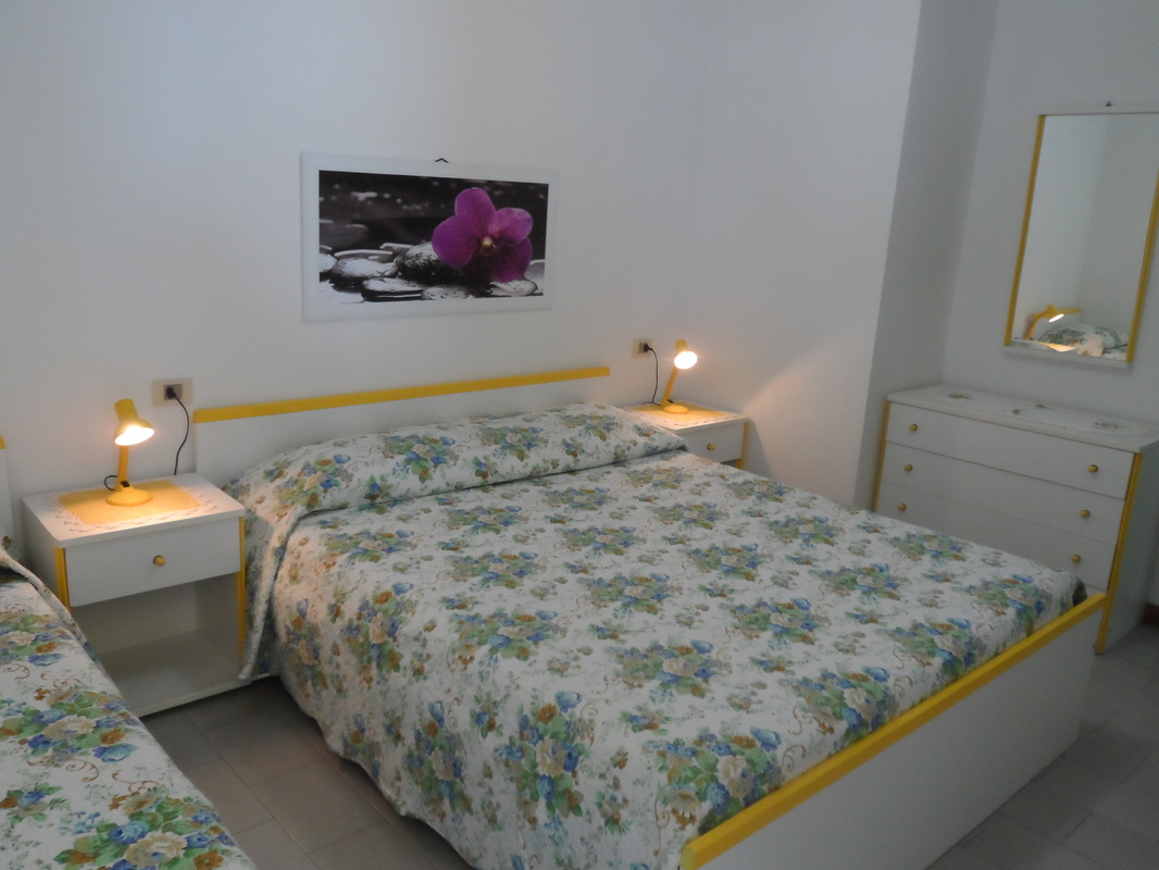 ![]() ![]() ![]() ![]() ![]() ![]() ![]() ![]() ![]() ![]() 20 Meter vom Strand entfernt und in unmittelbarer Nähe zu den Geschäften: dritter Stock, ein Schlafzimmer Wohnung besteht aus: Wohnraum mit Küchenzeile und Schlafsofa für zwei Personen, 1 Sclafzimmer mit 3 betten, große Terrasse mit Markise, Bad, Kühlschrank mit Gefrierfach, Mikrowelle, TV , Klimaanlage, Schließfach, Waschmaschine, Türverschluss für doppelte Verriegelung, überdachter Parkplatz und nummeriert. Die Preise sind all inclusive auch Strandservice (Sonnenschirm, Liegestuhl und Liegebett). Extra in Preis Klimaanlage auf Anfrage und Kurtaxe (€. 0,50 pro Person pro tag).